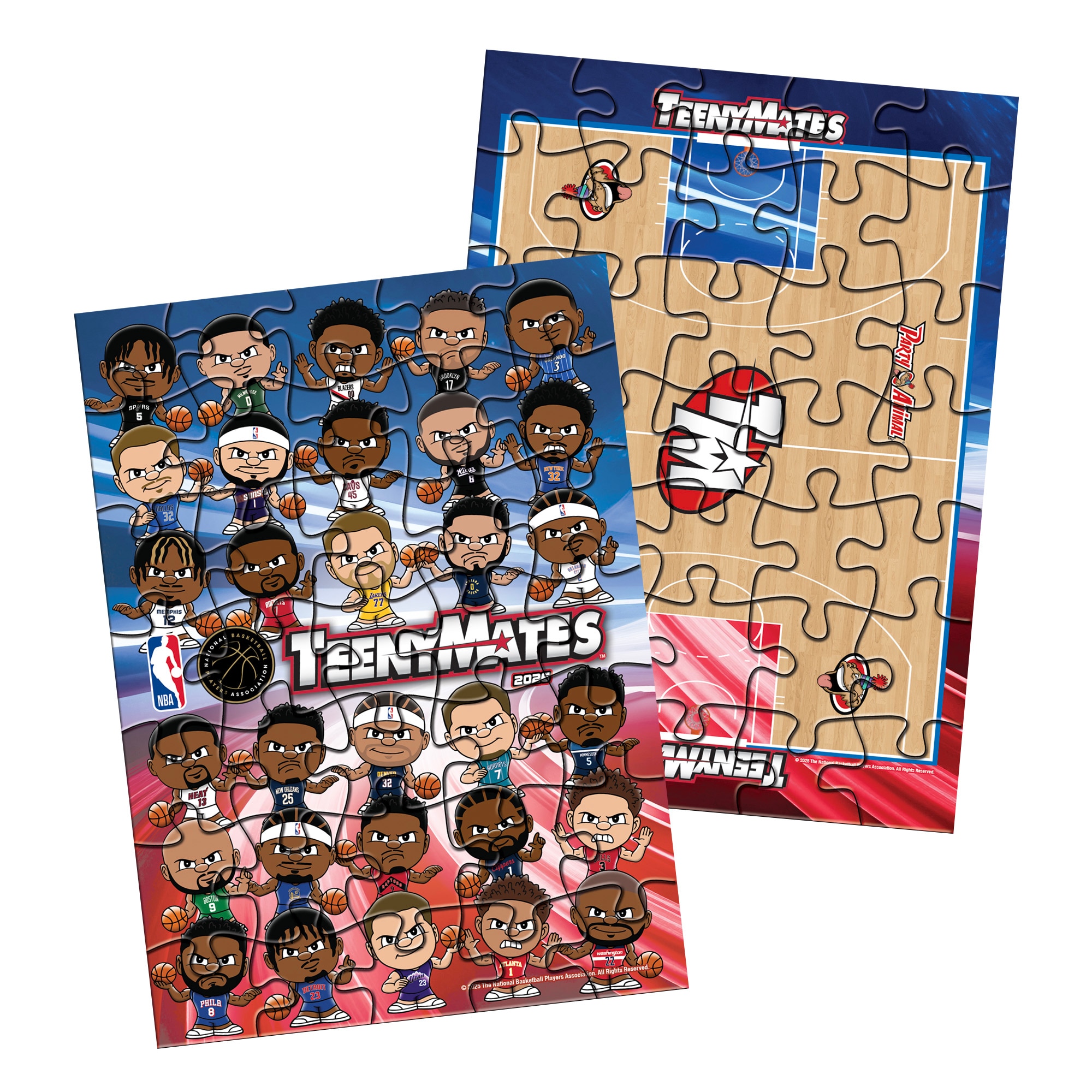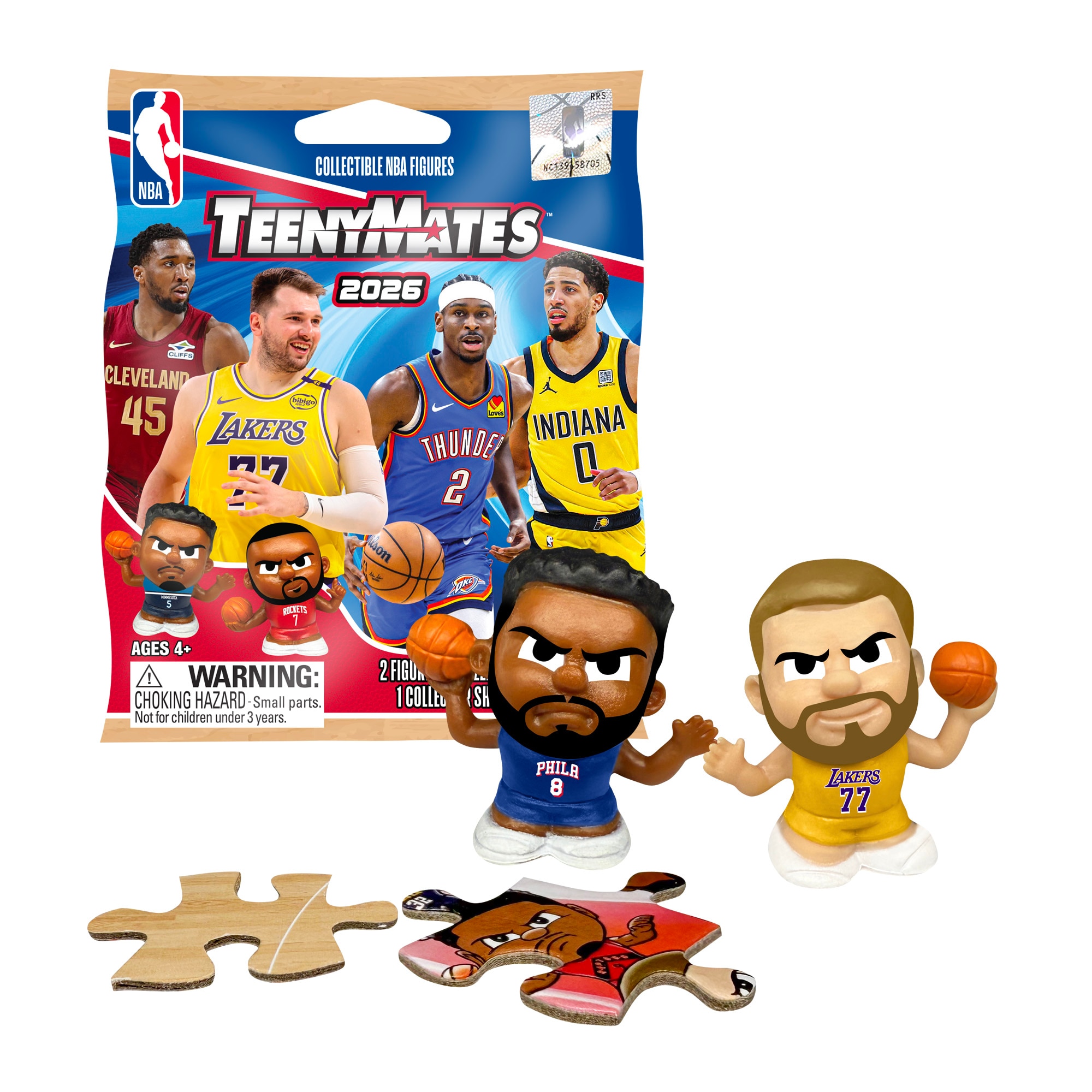 Inside each TeenyMates blind pack: • 2 random 1" NBA figures • 2 Double-Sided Puzzle Pieces • Collector's Checklist